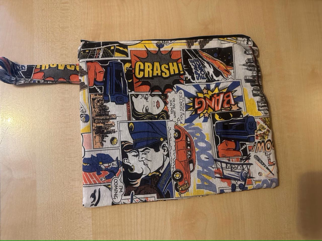 Realizzata con materiali di alta qualità, è compatta ma spaziosa, ideale per custodire con stile i tuoi oggetti essenziali, dal make-up agli accessori tech. Che tu sia un appassionato di fumetti o semplicemente ami distinguerti con un look audace, questa pochette è l’accessorio perfetto per esprimere la tua personalità.